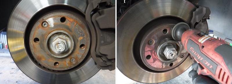 入庫当初、ホイールハブが錆で固着してホイールが外れなかったため小型バフで磨いて清掃。