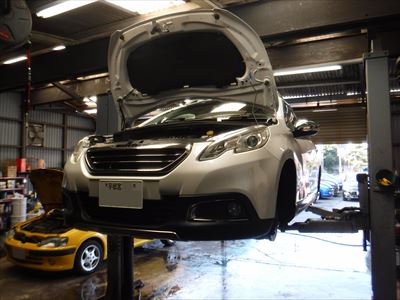「プジョー2008プレミアム 車検整備(AGMバッテリー&クーラント交換など)です。」
