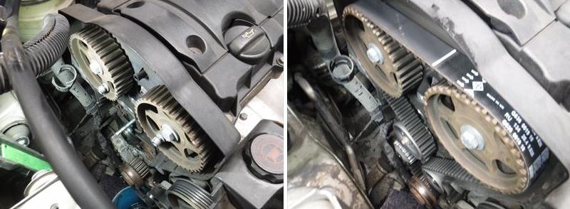 こちらのプジョー206CC アルミナムグレーはタイミングベルト類の交換ですね。