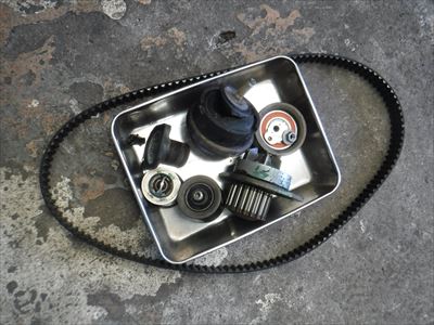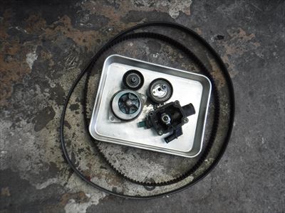 Tベルト+テンショナー+アイドラー+ウォーターポンプ+ドライブベルトも新品交換。