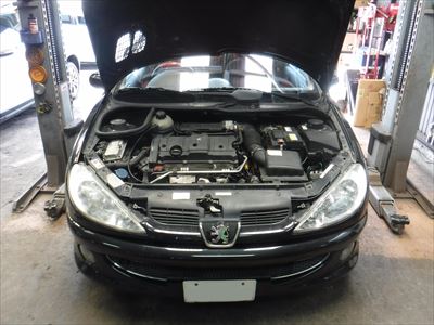 代わりまして、↑のプジョー206CC オブシディアンブラックもTベルト類の交換です。