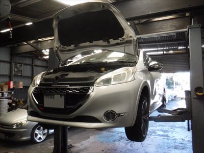 こちらのプジョー208GTi ビアンカホワイトは水漏れ修理での入庫ですね。