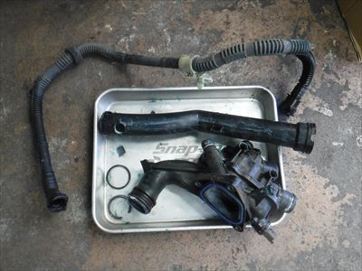 「プジョー208GTi 水漏れ修理➡バイパスパイプ+サーモハウジング交換です。」