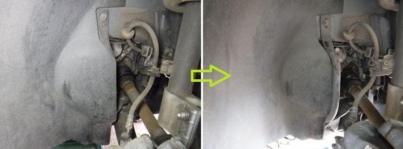 左側フェンダーライナーはちゃんと取付られていなかったので取付し直しておきました。