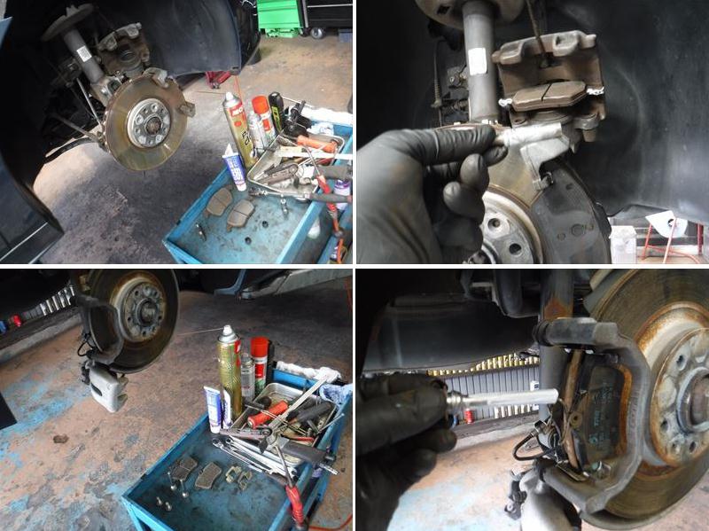 ブレーキパッドの面取りに、スライドピンなど各部グリスアップして組み戻し。