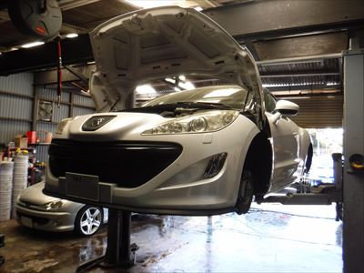 こちらのプジョーRCZ 6MT パールホワイトは車検整備での入庫ですね。