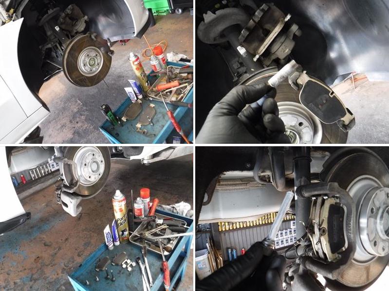 ブレーキパッドの面取りに、スライドピンなど各所グリスアップして組み戻し。