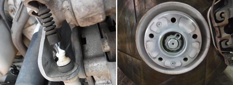 パーキングブレーキワイヤーブーツ部にもグリスアップ。