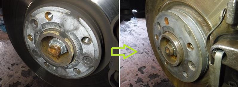 入庫当初、ホイールが錆で固着して外れなかったのでハブを小型バフで磨いて清掃。