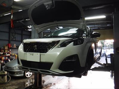 こちらのプジョー3008GTライン パールホワイトは車検整備での入庫ですね。