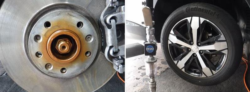 ホイールハブに高耐熱防錆グリースを塗布して、タイヤのエアーはMFAで充填。