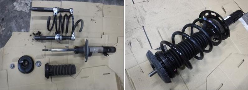 まずはフロントショックを取り外して新品パーツに組み換え。