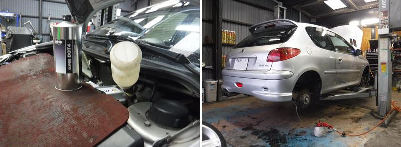 「プジョー206RC 車検整備&ショックアブソーバー+ロワアームなど交換です。」