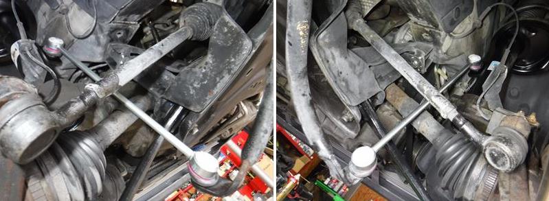 タイロッドは左側が錆で固着していましたが何とか回しました。