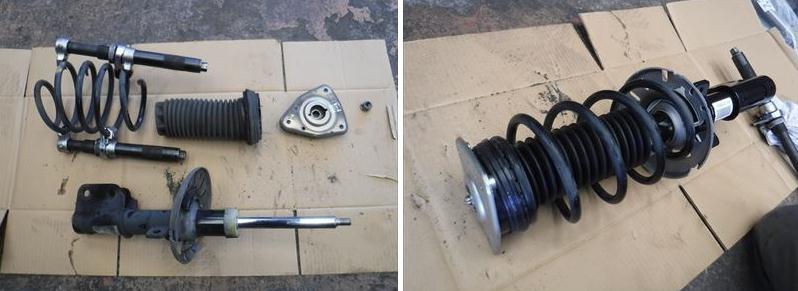フロントショックを取り外してサスを新品パーツに組み換え。