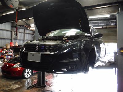 こちらのプジョー308SWアリュール ブルーHDi ダークブルーは車検整備での入庫ですね。