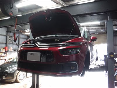こちらのシトロエン グランドC4ピカソ シャイン ブルーHDi ルージュルビは車検整備での入庫ですね。