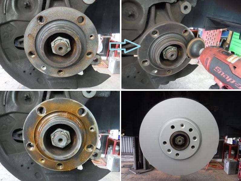 ハブは小型バフで磨いて清掃後に高耐熱防錆グリースを塗布してから