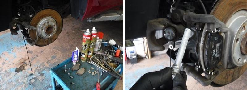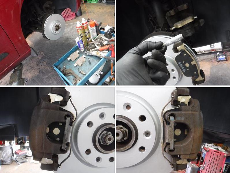 ブレーキパッドの面取りに、スライドピンなど各所グリスアップして