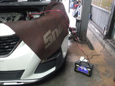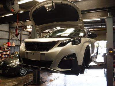こちらのプジョー3008GTライン パールホワイトは車検整備での入庫ですね。