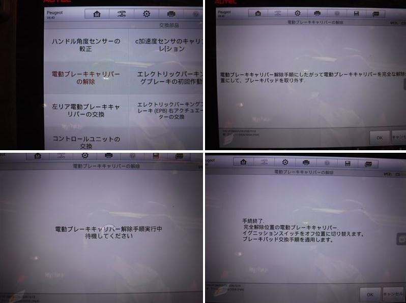 テスターでリア電動キャリパーモーターを完全解除位置まで戻して…。