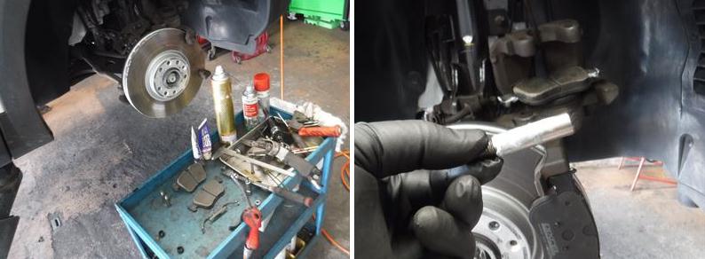 ブレーキパッドの面取りに、スライドピンなど各部グリスアップして