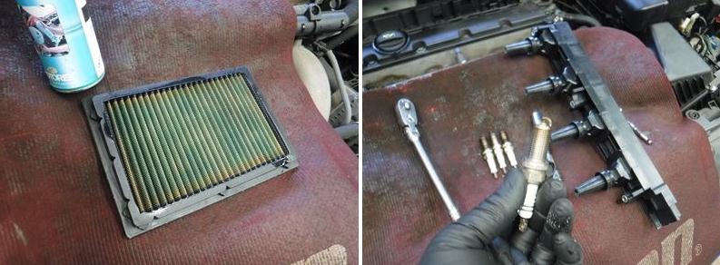 スパークプラグの点検、清掃。