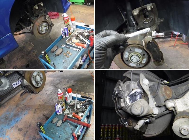 ブレーキパッドの面取りに、スライドピンなど各所グリスアップして組み戻し。