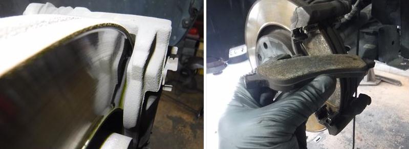 ブレーキパッドの面取りに、スライドピンなど各部グリスアップして新品のブレーキパッドに交換。