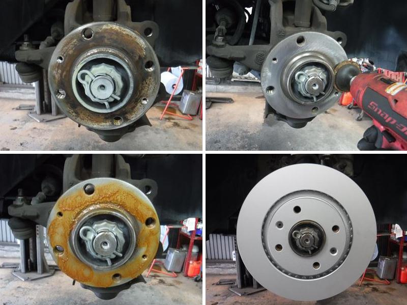 ハブは小型バフで磨いて清掃後に高耐熱防錆グリースを塗布して、新品のディスクローターに交換。