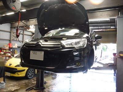 こちらのシトロエンC4 セダクション ノアールペルラネラは車検整備での入庫ですね。