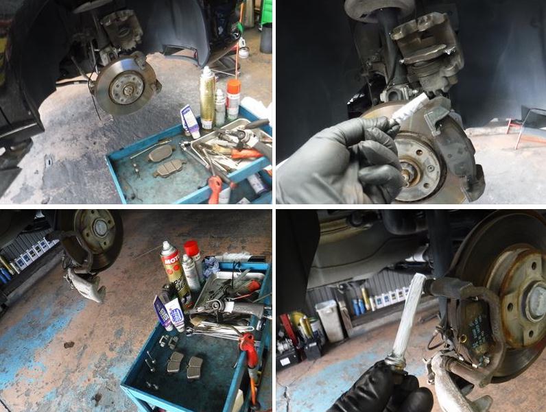 ブレーキPADの面取りに、スライドピンなど各所グリスアップして組み戻し。