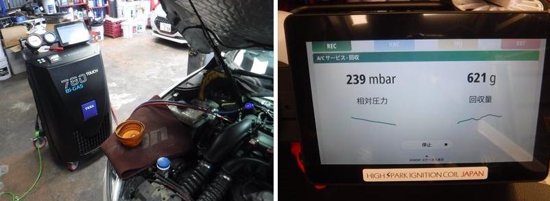K780Tで真空引+コンプレッサーオイル+ACガスを充填。