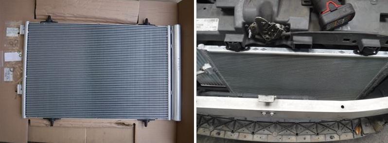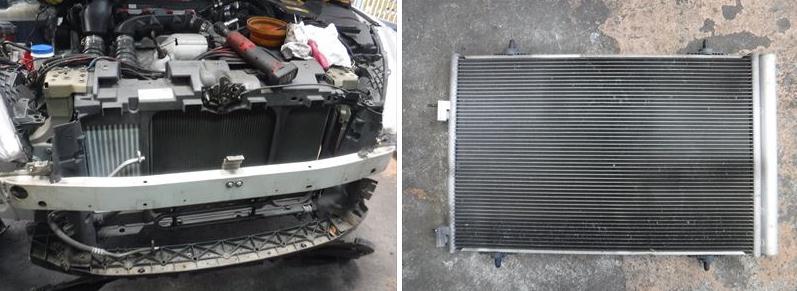 フロントバンパーを脱着してコンデンサーを取り外し。