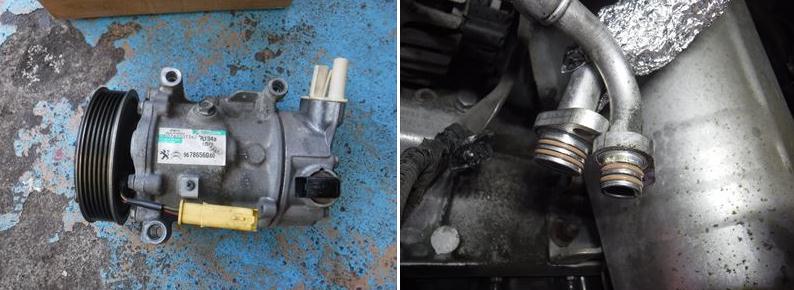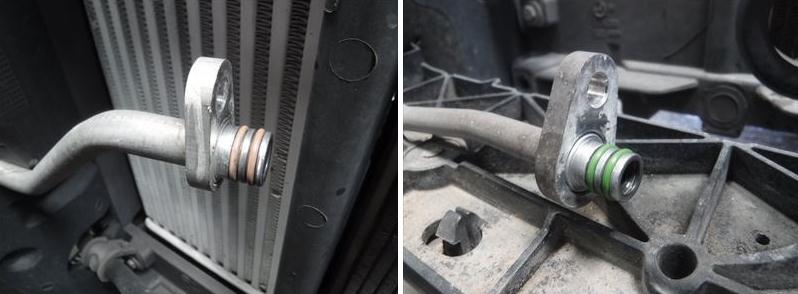 続いて、ACコンプレッサーを取り外して、フロンパイプガスケット新品交換。