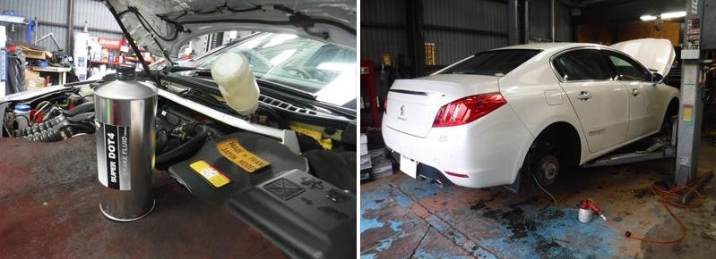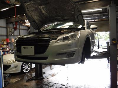 「プジョー508プレミアム 車検整備&ACコンプレッサー+コンデンサー交換です。」