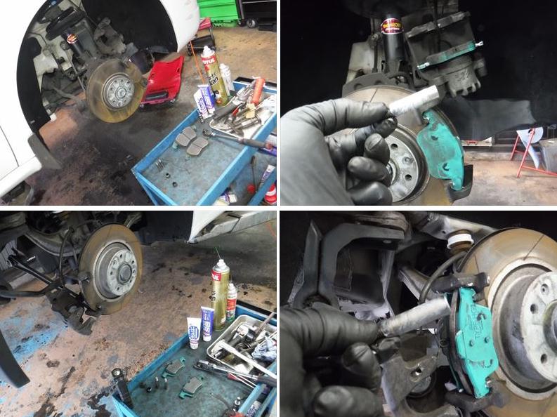 ブレーキパッドの面取りに、スライドピンなど各所グリスアップして組み戻し。