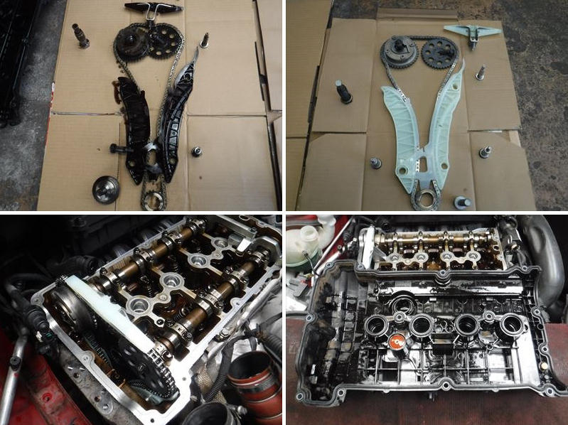 タイミングチェーン一式+ヘッドカバーガスケット+プラグホールガスケットを新品交換。