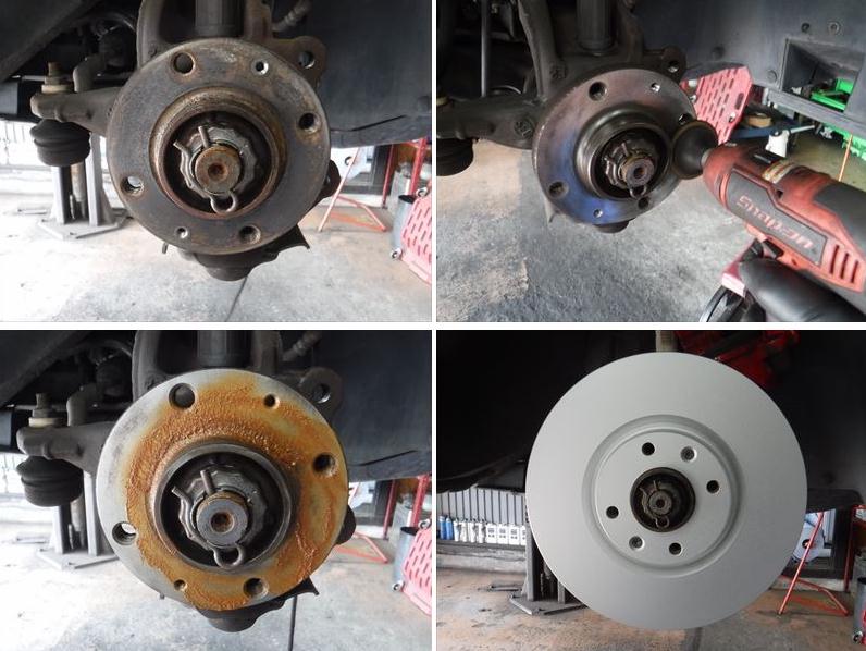ハブは磨いて清掃後に高耐熱防錆グリースを塗布してから新品のディスクローターを組付け。