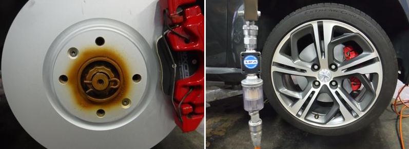 「プジョー208GTi 車検整備(Fディスクローター+低ダストブレーキパッド交換など)です。」
