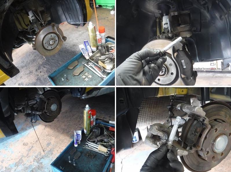 ブレーキパッドの面取りに、スライドピンなど各所グリスアップして組み戻し。