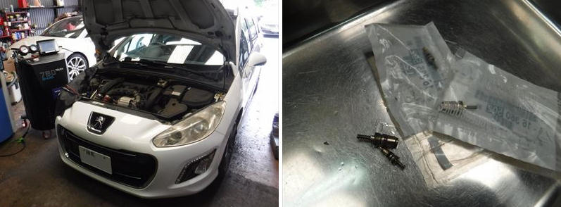 「プジョー308SWスポーティアム ATフルード交換 & A/Cメンテナンス施行 & HIGHSPARKノイズリダクションEXケーブル取付です。」