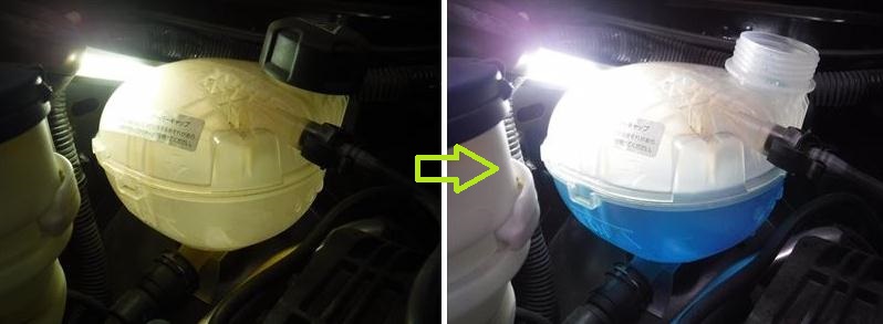 ちなみに入庫当初、LLCリザーブタンク内の冷却水が空だったので補充しておきました。