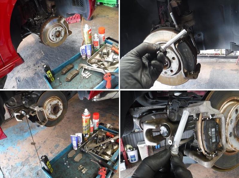 ブレーキパッドの面取りに、スライドピンなど各所グリスアップして組み戻し。