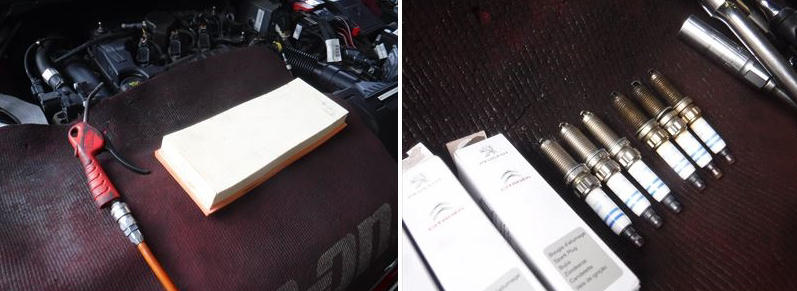 「プジョー308GT-Line 車検整備(冷却水+ドライブベルト+スパークプラグ交換)です。」
