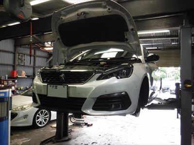 「プジョー308GT Blue-HDi 12ヵ月点検+HIGHSPARKノイズリダクションEXケーブル取付です。」
