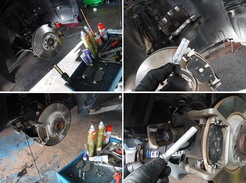ブレーキパッドの面取りに、スライドピンなど各所グリスアップして組み戻し。