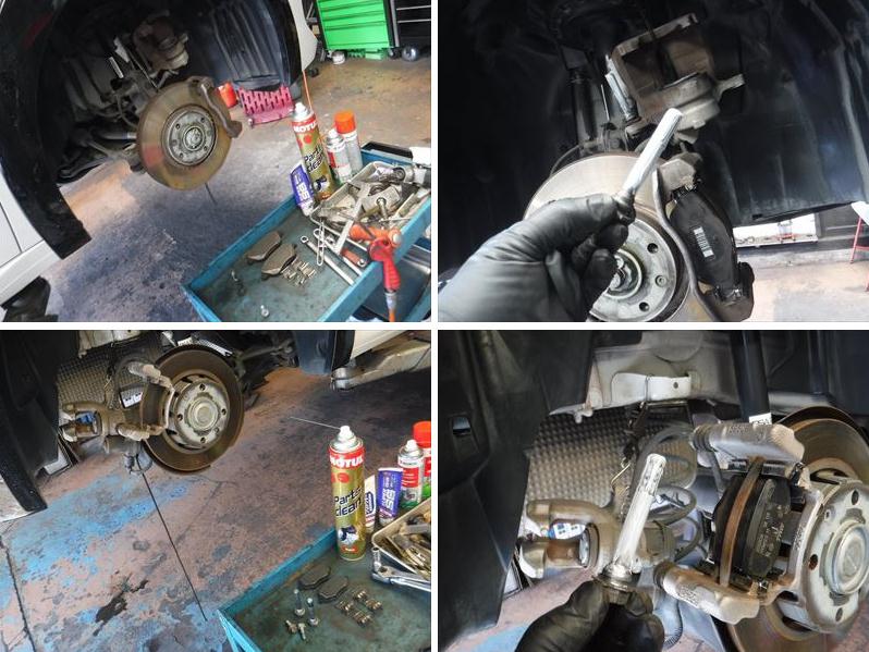 ブレーキパッドの面取りに、スライドピンなど各所グリスアップして組み戻し。