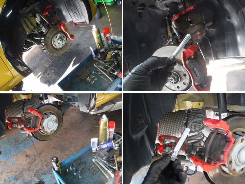 ブレーキパッドの面取りに、スライドピンなど各部グリスアップして組み戻し。