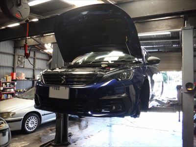 こちらのプジョー308SW GT ブルーHDi マグネティックブルーは車検整備での入庫ですね。